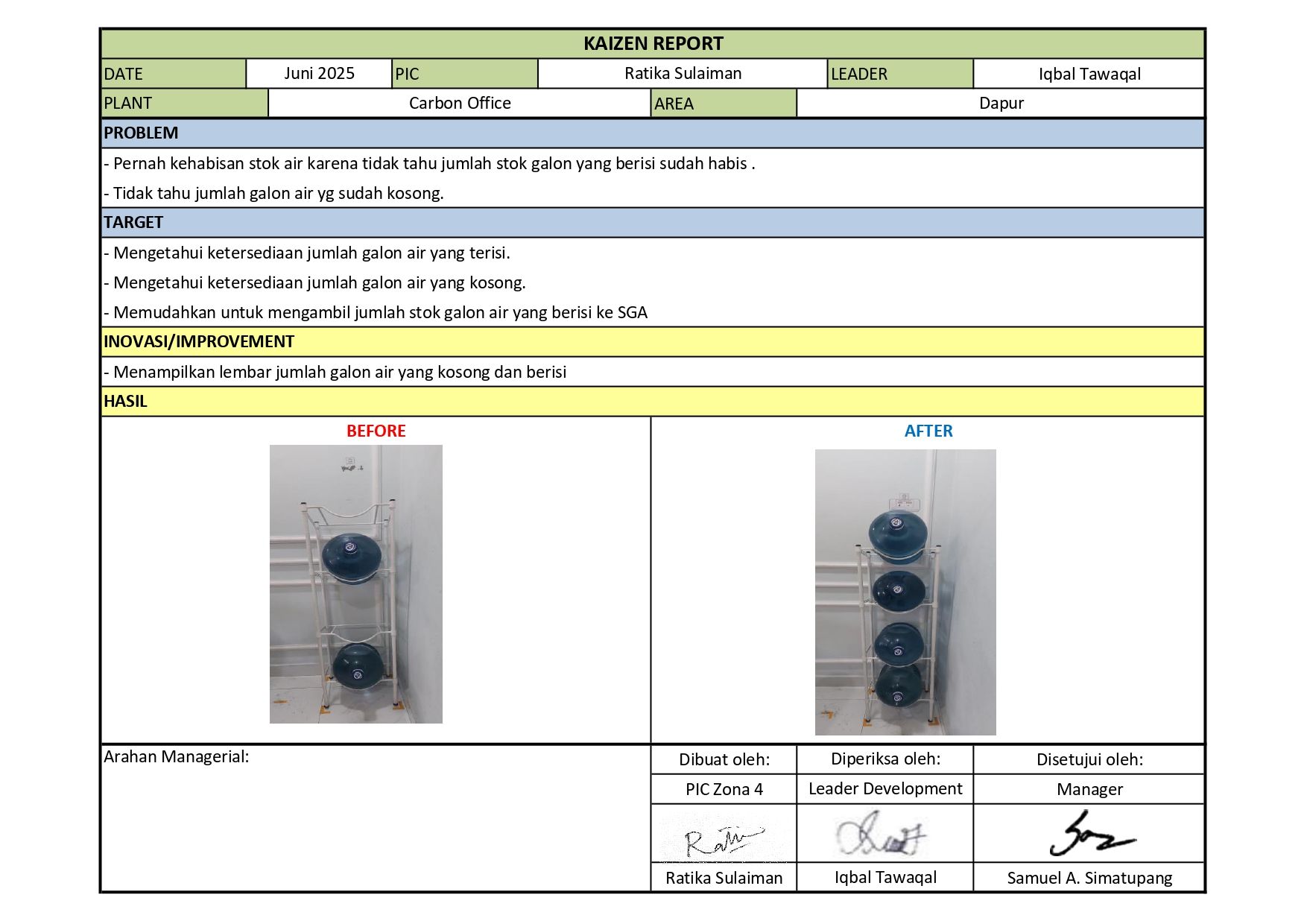 Menampilkan lembar jumlah galon air yang kosong dan berisi |