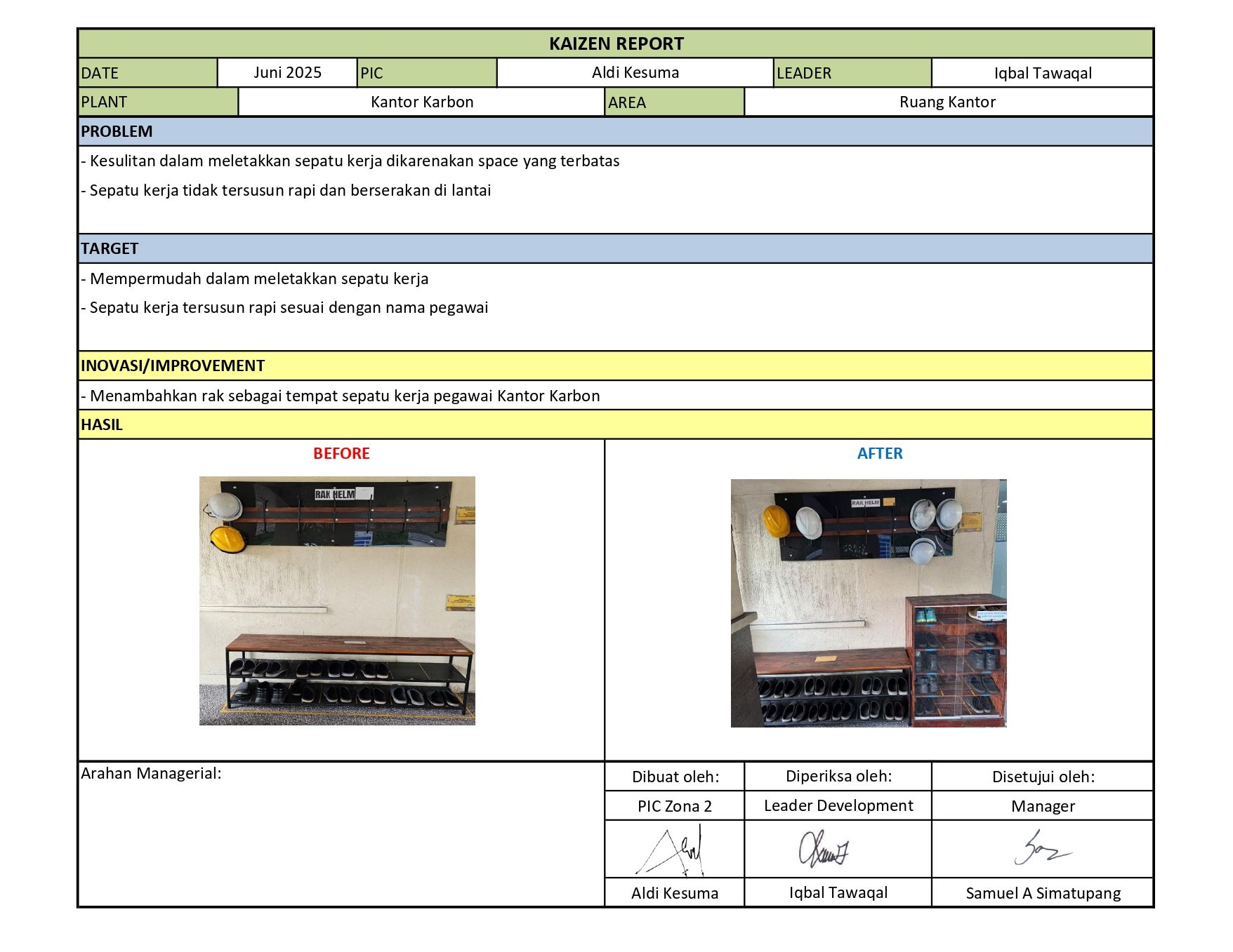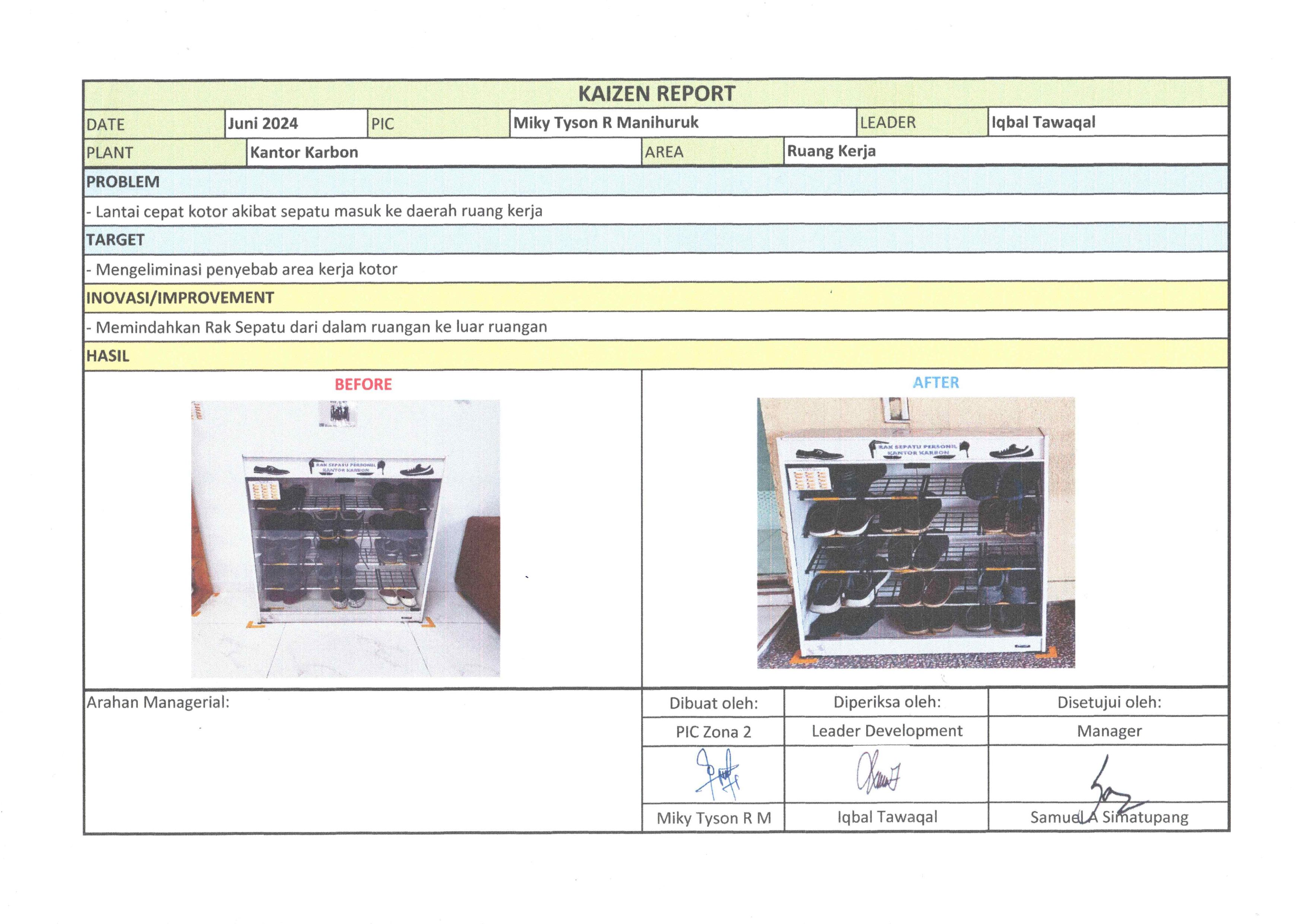 Penambahan Rak Sepatu Kerja |